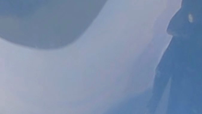 Las imágenes muestran la nariz del F-16 tambaleándose de izquierda a derecha, posiblemente debido a la estela del avión ruso o al esfuerzo del piloto por mantener el control tras el encuentro cercano.