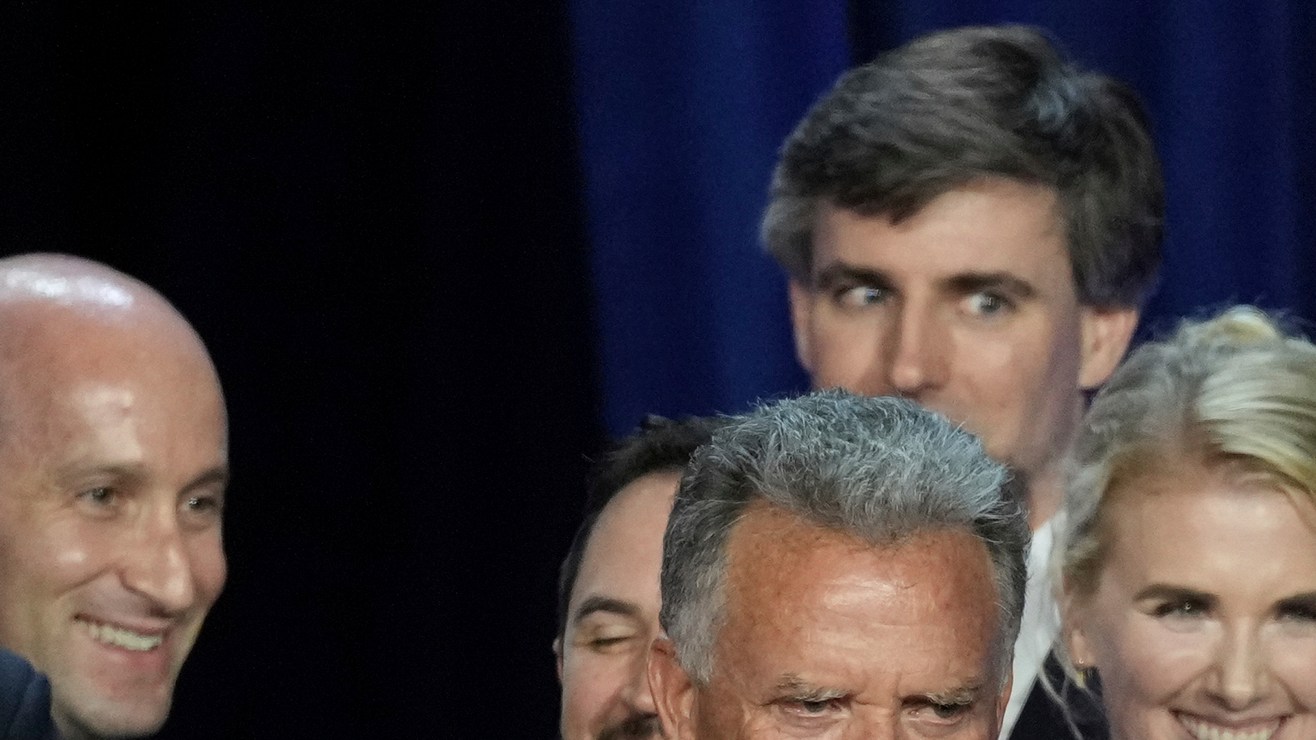 El presidente de la Cámara de Representantes, Mike Johnson, estuvo presente durante el discurso de celebración de Donald Trump en Florida, la noche del martes 5 de noviembre. Crédito: Lynne Sladky | AP