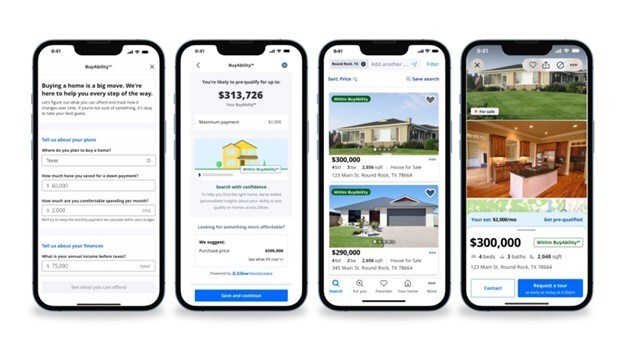 Zillow está presentando BuyAbility, una herramienta de asequibilidad de Zillow Home Loans que ofrece a los compradores una estimación personalizada en tiempo real del precio de la vivienda y el pago mensual que pueden afrontar, y su probabilidad de calificar para un préstamo.