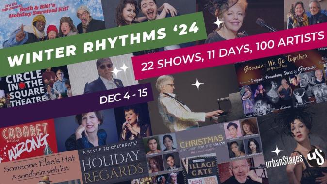 Del 4 al 15 de diciembre se llevará a cabo la 16ª premiada serie anual “Urban Stages Winter Rhythms”, con 22 espectáculos y más de 100 artistas. Actuaciones de cabaret, teatro musical, jazz, clásica, el gran cancionero americano, pop, rock, música internacional y más. La serie beneficiará a los programas de Extensión y Arte en Educación de Urban Stages. Todos los espectáculos (excepto la Noche de Gala) cuestan $35 con códigos de descuento especiales y ya están a la venta en: https://www.UrbanStages.org/winterrhythms2024.