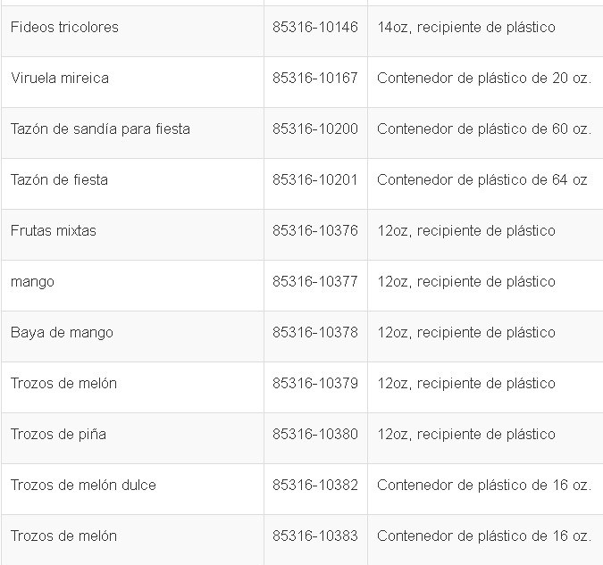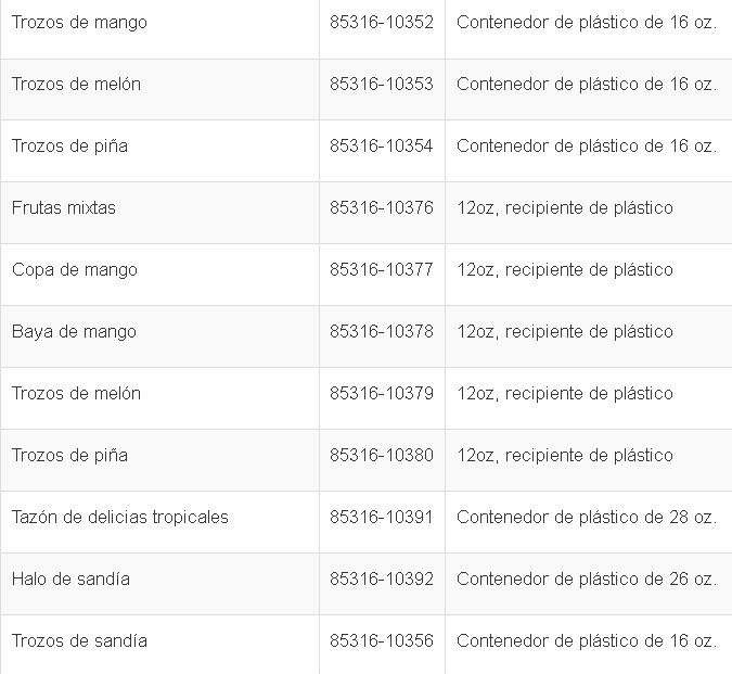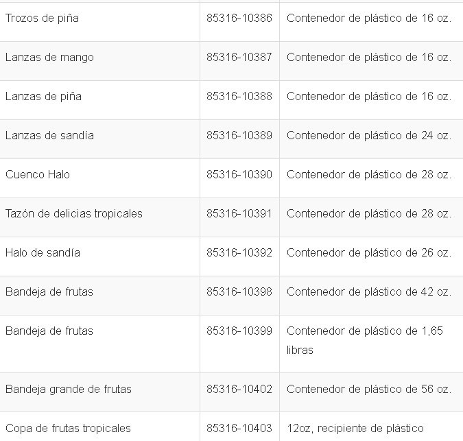 Los productos fueron procesados fábrica entre el 4 de noviembre hasta el 13 de noviembre del 2024 y distribuidos en Connecticut y Nueva York. Se trata de tres marcas de frutas y vegetales de las marcas Gracie’s Kitchens Brand, King Kullen Brand y Wild By Nature Brand.