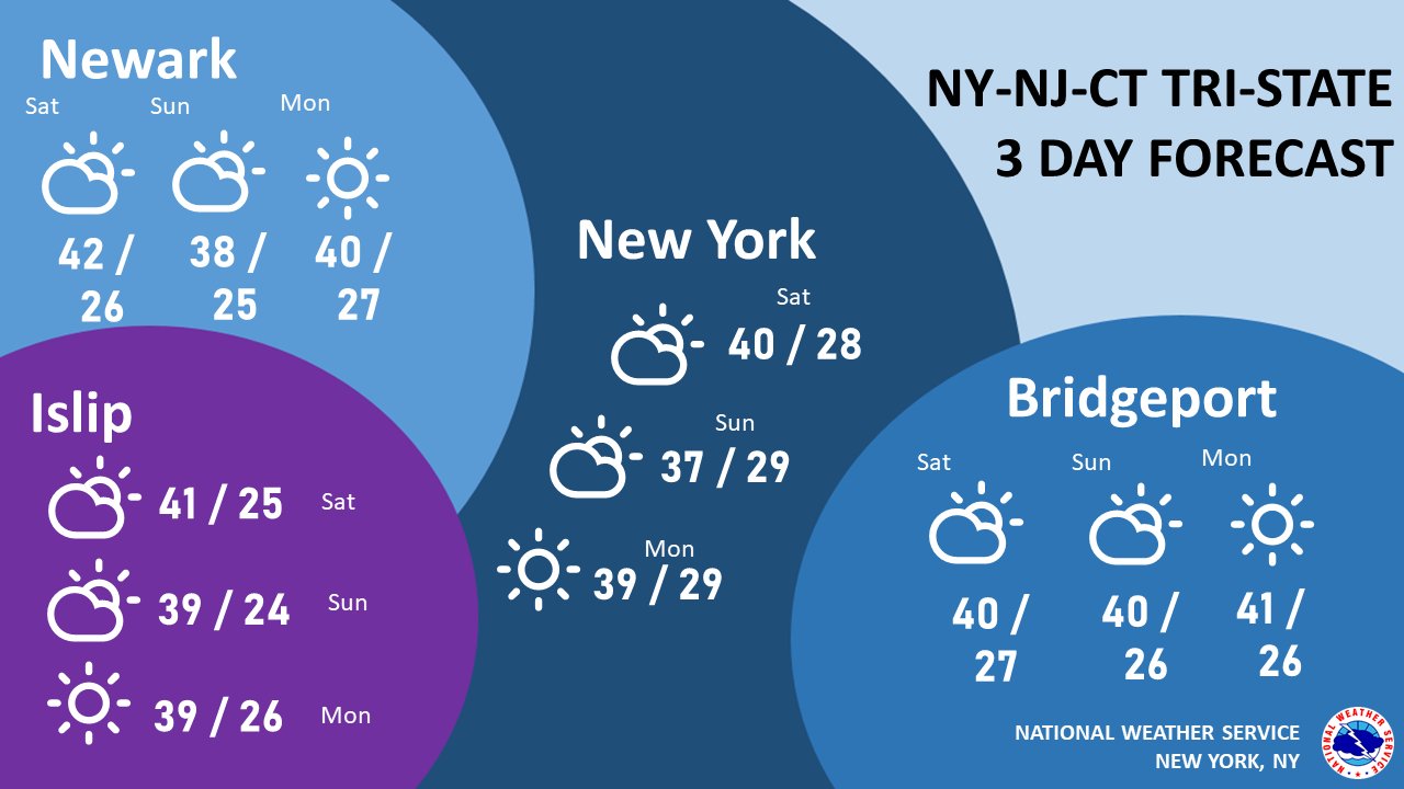 Fin de semana frío en NYC, aún en otoño. Crédito: @NWSNewYorkNY | Cortesía
