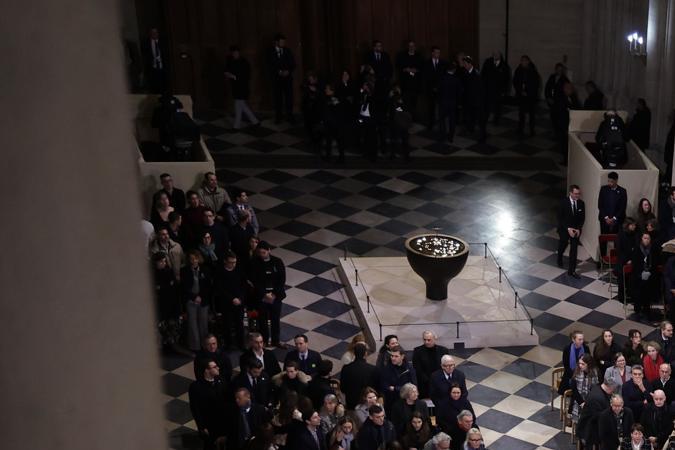 Ya con todos los invitados dentro, la señal del comienzo de la ceremonia vino de las campanas, que Macron, su esposa y la alcaldesa de París, Anne Hidalgo, escucharon en pie ante la fachada.