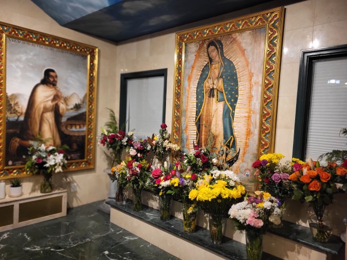 El altar con la imagen de la Virgen de Guadalupe y San Juan Diego en la iglesia San Bernardo.