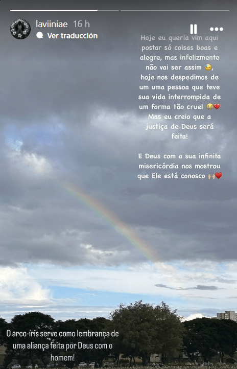 La hermana de Endrick, Lavinia Sudre, expresó su profundo dolor y rindió homenaje a su pareja a través de sus redes sociales. En un emotivo mensaje, prometió mantener viva su memoria: “Hoy nos despedidmos de una persona cuya vida fue interrumpida de una forma muy cruel (…) Yo te amo”.