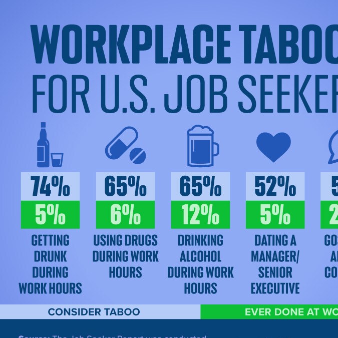 Según la encuesta, más allá de la honestidad, quienes buscan empleo se aferran a tabúes que tienen más que ver con acciones irresponsables que con la deshonestidad. Los principales tabúes incluyen emborracharse durante las horas de trabajo (74%), tomar una bebida alcohólica en el trabajo (65%), usar drogas recreativas durante las horas de trabajo (65%), chismear sobre colegas (51%), chismear sobre gerentes (51%) y salir con un gerente o ejecutivo senior (52%).