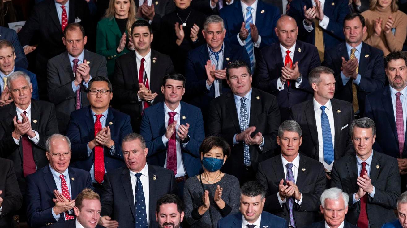 Los legisladores republicanos aplauden en la Cámara de Representantes del Capitolio de Estados Unidos tras la certificación de la victoria electoral del presidente electo Trump en Washington, DC, EE.UU., el 06 de enero de 2025. Crédito: EPA/JIM LO SCALZO | EFE