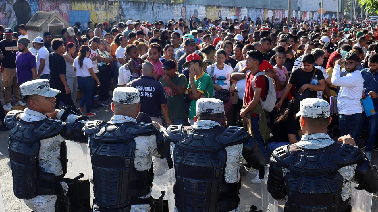 Un agente federal avisó, megáfono en mano, de que ya solo se atenderá a quienes dispongan de citas hasta el día 30 de enero.