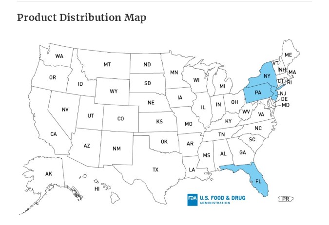 La más reciente actualización de la FDA, el 6 de febrero, indica que los pasteles están listos para comer, se sirvieron en Florida, Nueva Jersey, Nueva York y Pensilvania en cafeterías de hoteles, panaderías, instituciones, restaurantes y en eventos con servicio de catering.