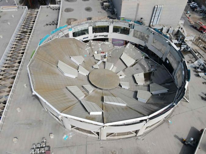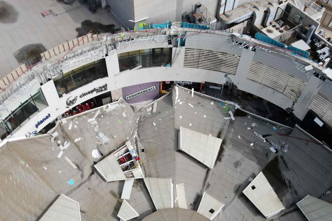 Fotografía aérea del techo colapsado del comercial Real Plaza, en Perú Crédito: Steffano Palomino | EFE