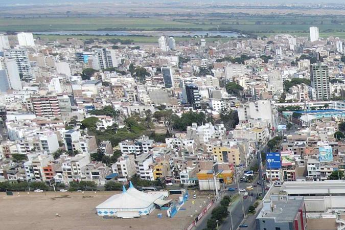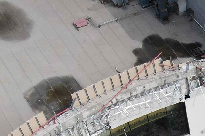 Fotografía aérea del techo colapsado del comercial Real Plaza, en Perú Crédito: Steffano Palomino | EFE