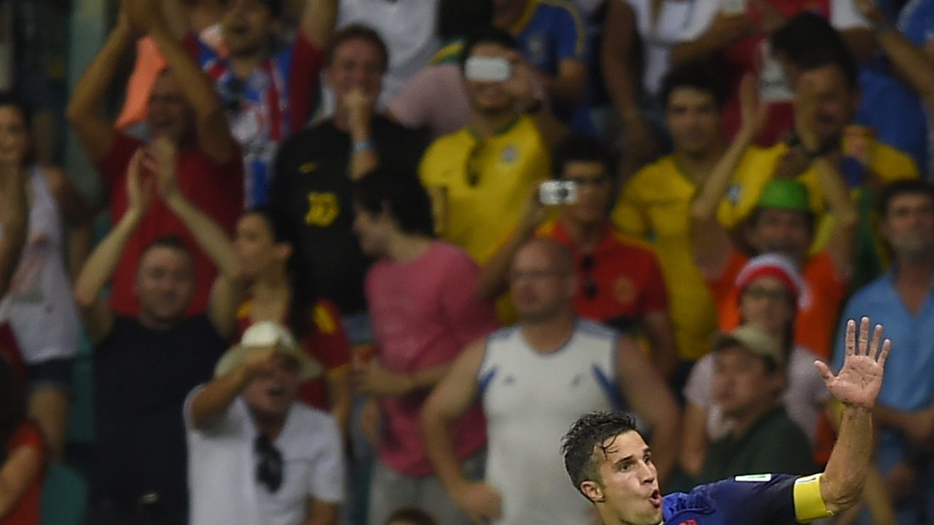 Robin van Persie celebra durante el Mundial de 2014. Imagen referencial. Crédito: Manu Fernández | AP