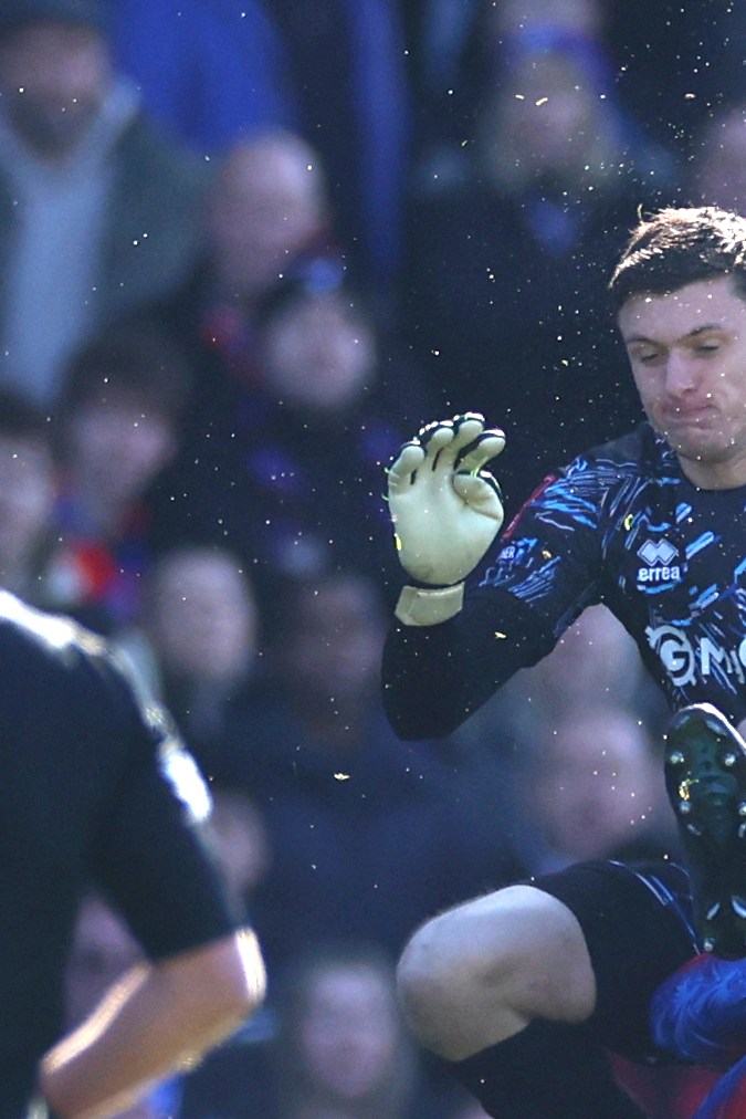La acción se desarrolló cuando recién se daban las primeras acciones de este juego. Un pelotazo largo a la espalda de Jake Cooper encontró al atacante del Palace atento. Mateta quedó mejor posicionado que el defensor y cuando fue a ganarle el espacio, sintió un virulento impacto.