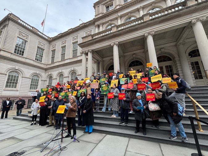 Manifestantes se pararon en la Alcaldía de NYC para defender las protecciones de ciudad Santuario Crédito: Cortesía Make the Road NY | Cortesía