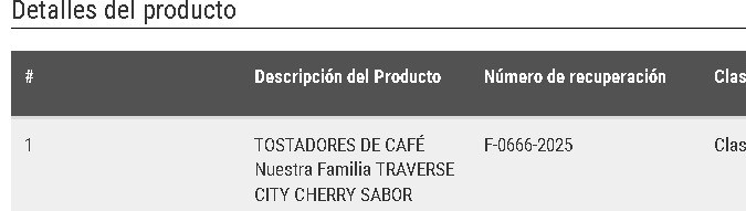 Se trata un retiro voluntario iniciado el 13 de marzo y se mantiene, de Massimo Zanetti Beverage USA, del producto café molido Our Family Traverse, después que se descubrió que estaba “mal etiquetado” como descafeinado.
