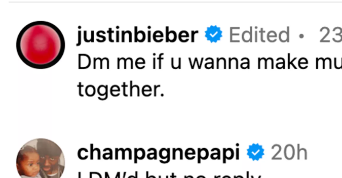 Justin Bieber generó revuelo esta semana en redes sociales tras publicar una invitación abierta a colaborar musicalmente, que incluyó una respuesta del también canadiense Drake, quien afirmó no haber recibido contestación a su mensaje.