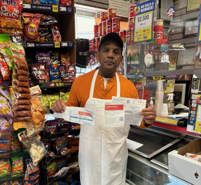 “¿Qué más van aumentar?, si de por sí los bodegueros estamos por años enfrentando un recibo que viene cada vez más alto. Viene el verano y tenemos que pensar en apagar el aire acondicionado. Los pequeños comerciantes de esta ciudad trabajamos para pagar servicios y renta. Nuestra ganancia es nada”, denuncia el bodeguero dominicano Cándido Arcangel, exhibiendo una factura acumulada en “números rojos”, de más de $6,000.
