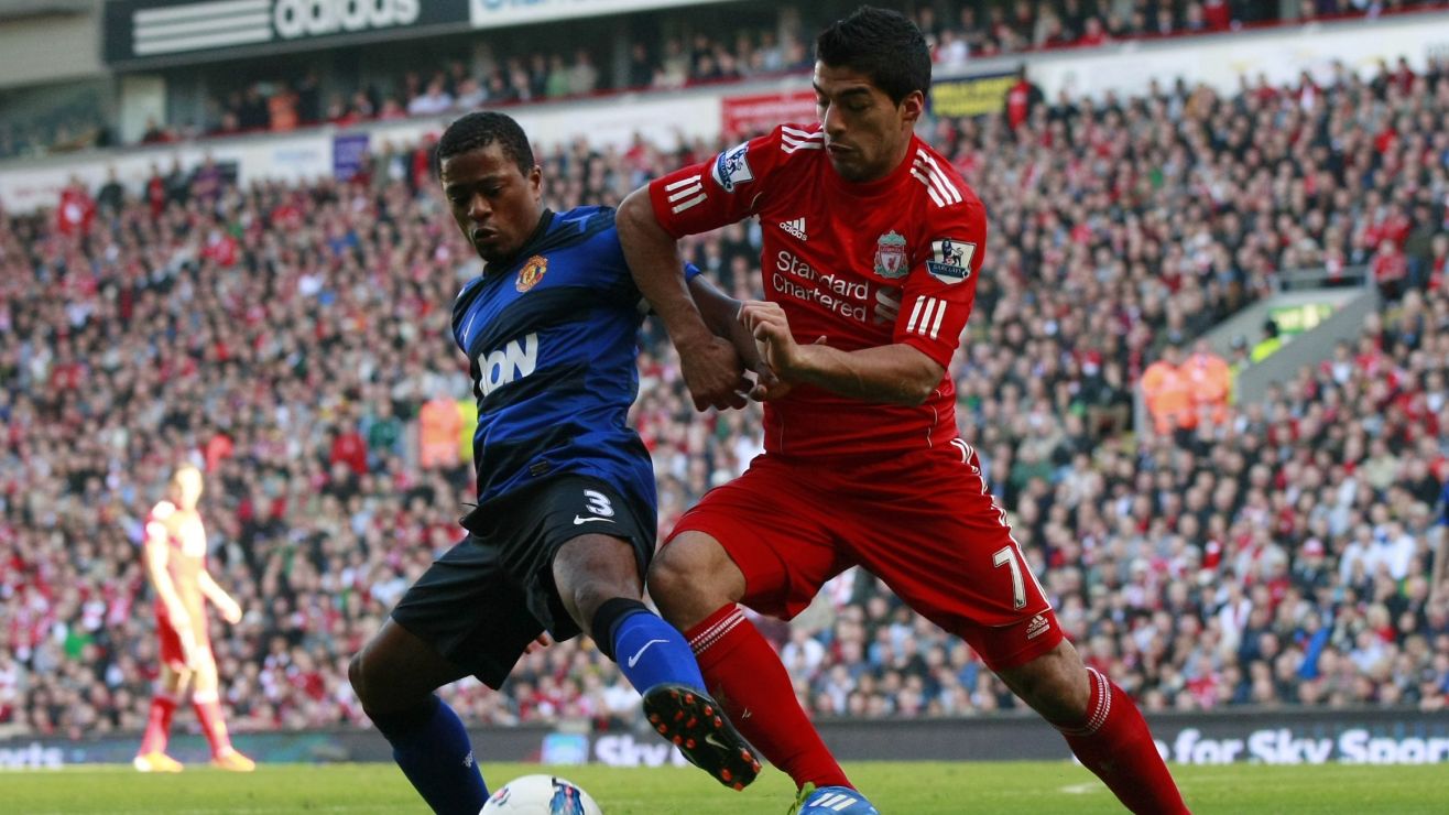 Patrice Evra y Luis Suárez se enfrentaron en la Premier League. Crédito: Tim Hales | AP