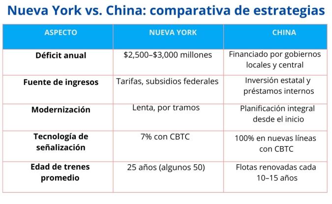 A diferencia de la fragmentación institucional de Nueva York, China basa su éxito en una planificación centralizada y la coordinación entre gobiernos locales y empresas estatales. Esto permite la ejecución rápida de proyectos a gran escala, como la expansión del Metro de Kunming o la electrificación de líneas en Chengdu y Wuhan.
