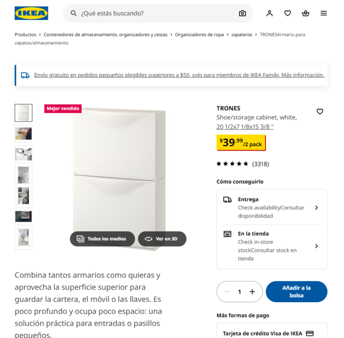 IKEA tiene una promoción imperdible con 2 zapateras de la marca Trones por solo $39.99 para almacenar todo tipo de calzado y organizar el dormitorio, para tener un mayor espacio, comodidad y orden.