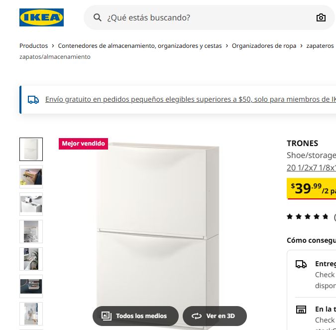 IKEA tiene una promoción imperdible con 2 zapateras de la marca Trones por solo $39.99 para almacenar todo tipo de calzado y organizar el dormitorio, para tener un mayor espacio, comodidad y orden.
