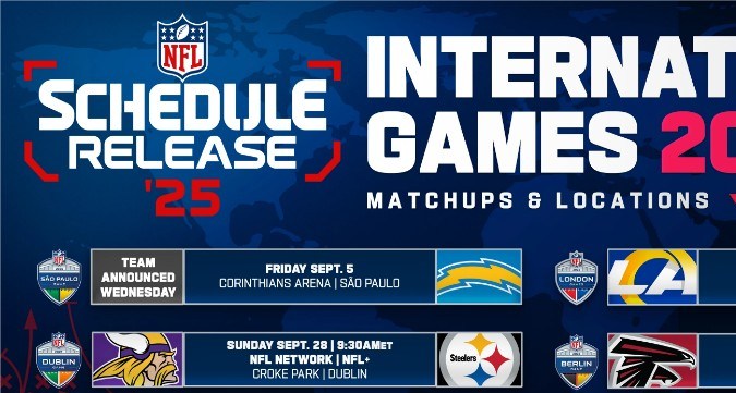 Un día antes se dio a conocer los enfrentamientos que se disputarán fuera de Estados Unidos. Como parte el programa de globalización de la NFL.