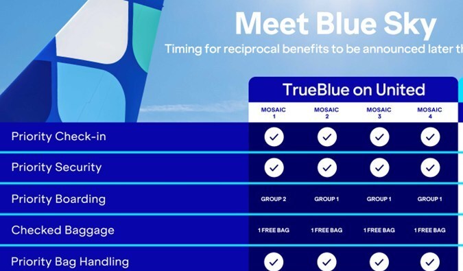 JetBlue y United anunciaron Blue Sky: una nueva colaboración que ofrece a los clientes de ambas aerolíneas más opciones para encontrar vuelos que se ajusten a sus planes, así como nuevas oportunidades de ganar y usar millas MileagePlus y puntos TrueBlue en ambas aerolíneas.