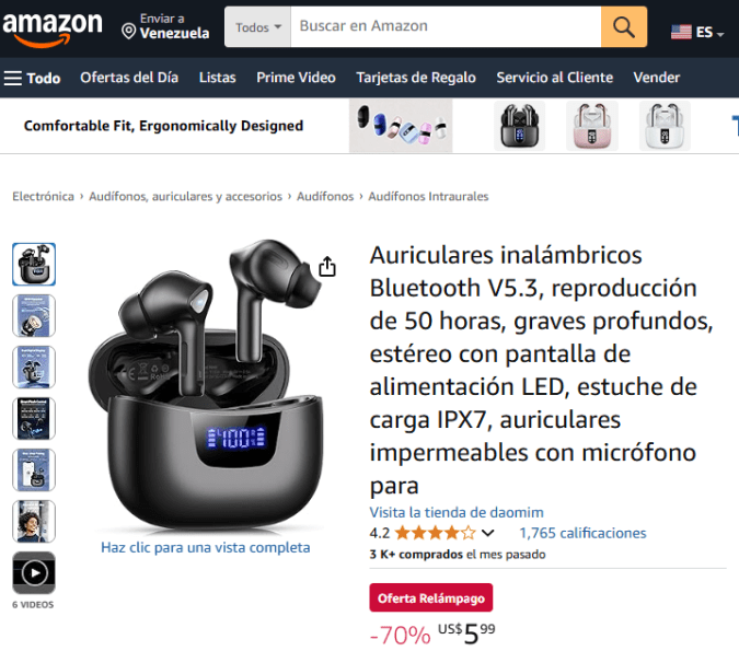 Auriculares inalámbricos Bluetooth V5.3: La plataforma de comercio electrónico tiene disponible con una oferta imperdible estos audífonos con reproducción de 50 horas, graves profundos, estéreo con pantalla de alimentación LED y estuche de carga IPX7.
