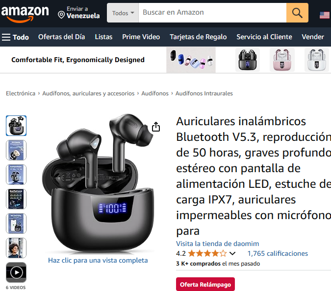 Auriculares inalámbricos Bluetooth V5.3: La plataforma de comercio electrónico tiene disponible con una oferta imperdible estos audífonos con reproducción de 50 horas, graves profundos, estéreo con pantalla de alimentación LED y estuche de carga IPX7.