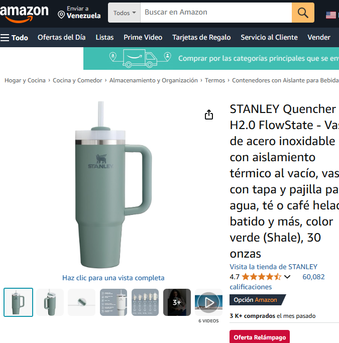 “El vaso FlowState H2.0 te mantiene hidratado con menos recargas. El aislamiento térmico al vacío de doble pared significa que las bebidas permanecen frías, heladas o calientes durante horas. Elige entre nuestras opciones de 14 onzas, 20 onzas, 30 onzas, 40 onzas y 64 onzas”, destaca Amazon.