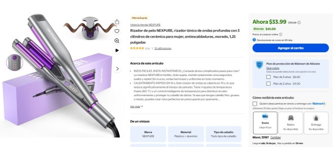 Walmart lanzó una oferta especial solo por este jueves: el rizador de cabello NEXPURE, ideal para lograr ondas suaves y duraderas, está disponible por solo $34 dólares, un descuento de $45 sobre su precio regular de $79.