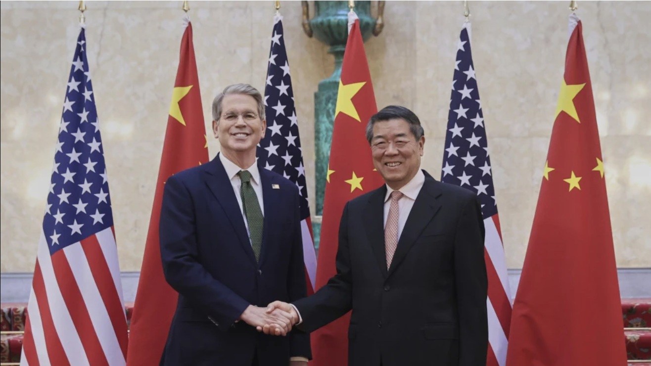 El viceprimer ministro chino, He Lifeng y el secretario del Tesoro de EE.UU., Scott Bessent, sostuvieron una reunión para restablecer el comercio entre ambos países. Crédito: AP