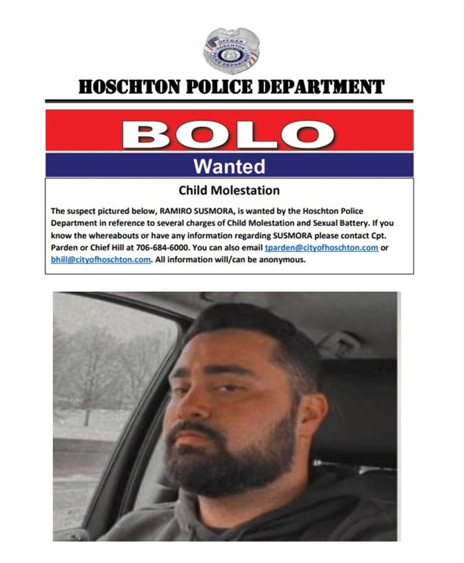 La policía de Hoschton confirmó que existen órdenes de arresto contra Ramiro Antonio Sus Mora Crédito: Hoschton Police Department | Cortesía