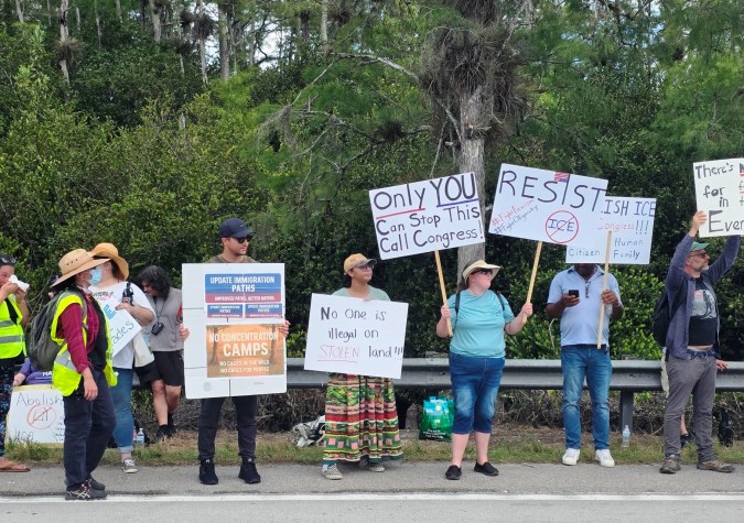 Protestaron durante visita de Trump a nueva prisión para migrantes Alligator Alcatraz