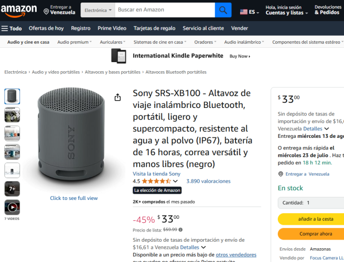 El altavoz de viaje Sony SRS-XB100 que está disponible en Amazon, tiene un valor de solo $33 por tiempo limitado. Normalmente su precio es de $60, es decir que el descuento en este producto es de 45%.