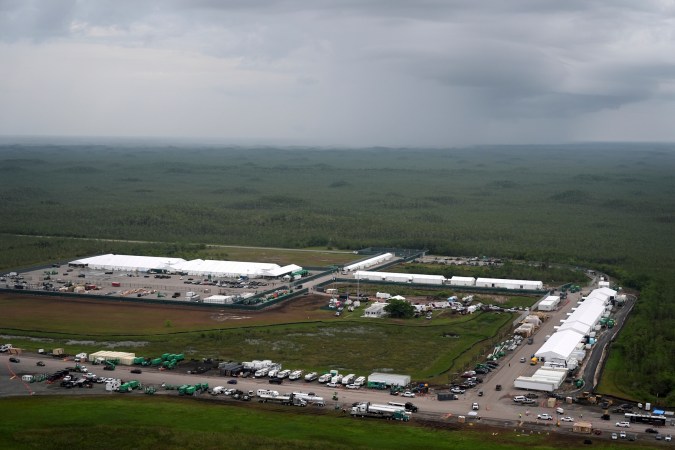 El lugar, que actualmente alberga a 750 migrantes, fue descrito por legisladores de Florida como un sitio con “jaulas, carpas improvisadas, calor asfixiante, escasez de agua y comida en mal estado”.