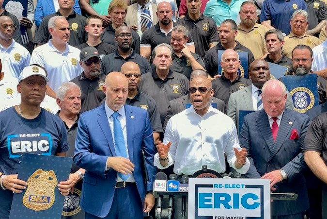 Los sindicatos que dieron su apoyo al mandatario municipal incluyen a los que representan a los capitanes, tenientes, detectives y sargentos del Departamento de Policía de la Ciudad de Nueva York. La Asociación Benéfica de Oficiales Correccionales, efectivos de tránsito y el sindicato de los oficiales de saneamiento también lo respaldaron.