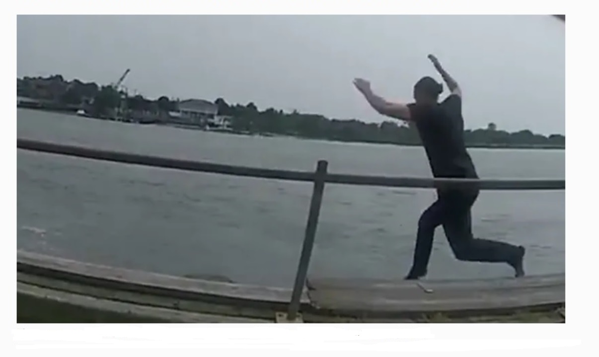 Detective NYPD saltando al mar en Far Rockaway (Queens) para atrapar a un prófugo.