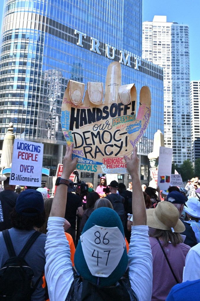 Una de las concentraciones más numerosas tuvo lugar en Chicago, donde la tensión es creciente ante la posibilidad de que el gobierno federal despliegue a la Guardia Nacional para combatir la violencia en la ciudad.