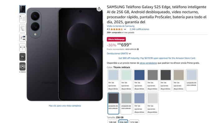 Amazon sorprendió a sus usuarios con una rebaja considerable en el Samsung Galaxy S25 Edge de 256 GB, uno de los modelos más potentes. El teléfono tenía un precio de $1,100, pero ahora puede adquirirse en la plataforma por $700, lo que significa un ahorro de $400.