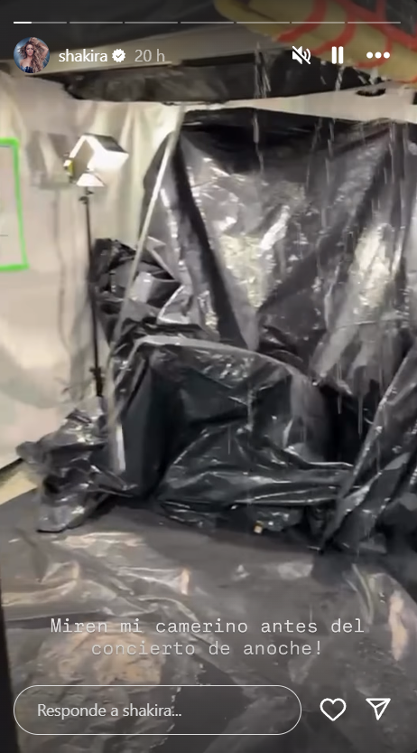 En un video publicado por Shakira en sus redes sociales, se puede ver cómo el espacio se cubría con bolsas negras mientras el agua caía por los costados.