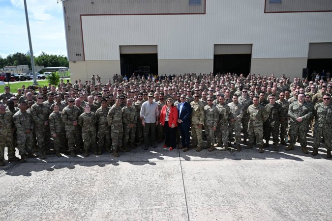 Como parte de su breve visita este lunes, Hegseth dio un mensaje a, aproximadamente, 300 soldados desde la pista de la Base Aérea Muñiz en Carolina. Junto a Hegseth, se encontraba el jefe del Estado Mayor Conjunto de las Fuerzas Armadas, el general Dan Caine, quien a su vez es el oficial militar de más alto rango.