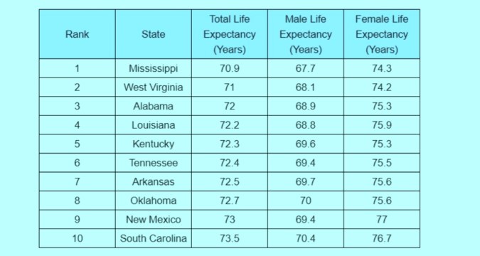 Los 10 estados con menor esperanza de vida en EE.UU.