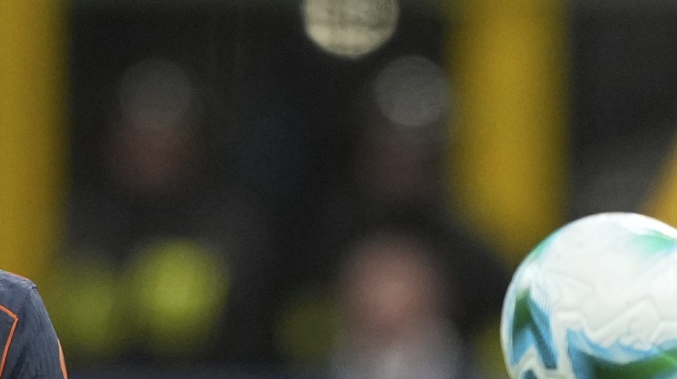 Fue a disputar la pelota contra un defensor. Crédito: Antonio Calanni | AP