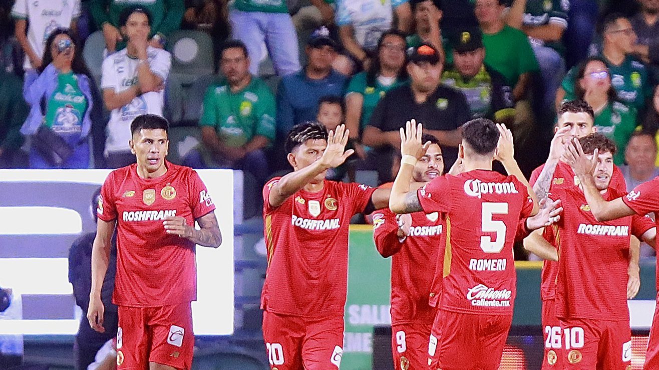 Toluca festeja el primer gol durante la victoria ante León por la Liga MX. Crédito: Luis Ramírez | EFE