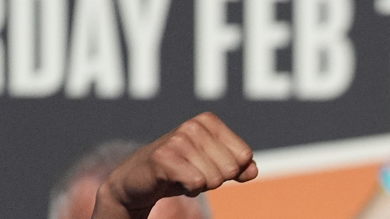 Ángel Fierro posa durante el pesaje ceremonial para su pelea de peso superligero contra Isaac Cruz. Crédito: John Locher | AP