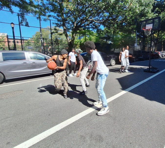 Entre centenares de alumnos, Emily Méndez, de origen dominicano, se sentía orgullosa de compartir su energía caribeña con sus compañeros, a plena luz del día, con un clima extraordinario y en la amplitud de la calle Clarkson de Manhattan, convertido en un festival de tambores y una cancha de basketball.