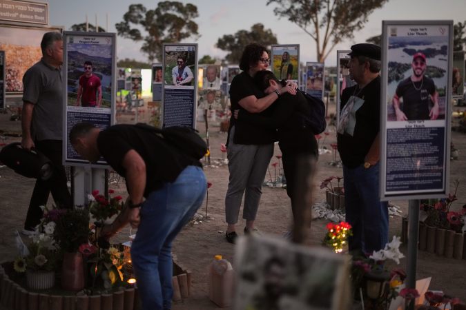 Fotos en homenaje a los asesinados durante el festival Nova, en Israel. Crédito: Ohad Zwigenberg | AP