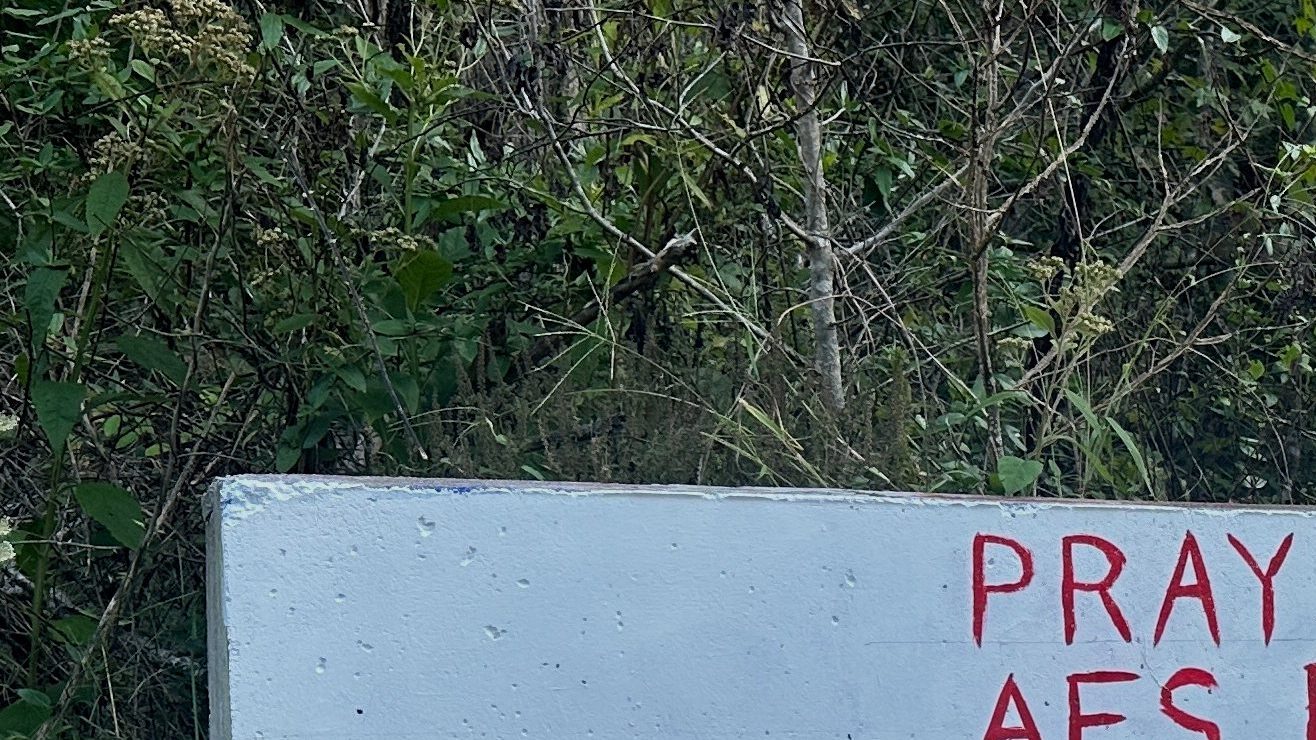 Un cartel se exhibe cerca del lugar de una explosión en una planta de fabricación de explosivos, a unas 60 millas al suroeste de Nashville, Tennessee. Crédito: Adrian Sainz | AP