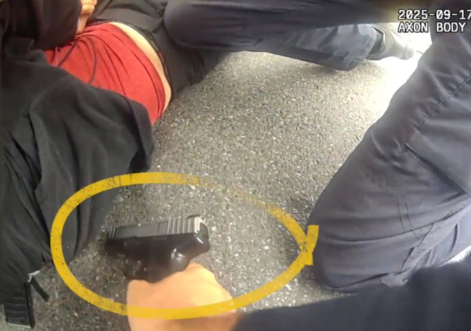 Uno de los policías, con la cámara corporal encendida, persiguió a uno de ellos y logró arrestarlo. Otros agentes vestidos de civil interceptaron al segundo individuo casi al mismo tiempo y lo inmovilizaron, sin embargo, la situación se puso más tensa cuando descubrieron que estaba armado.